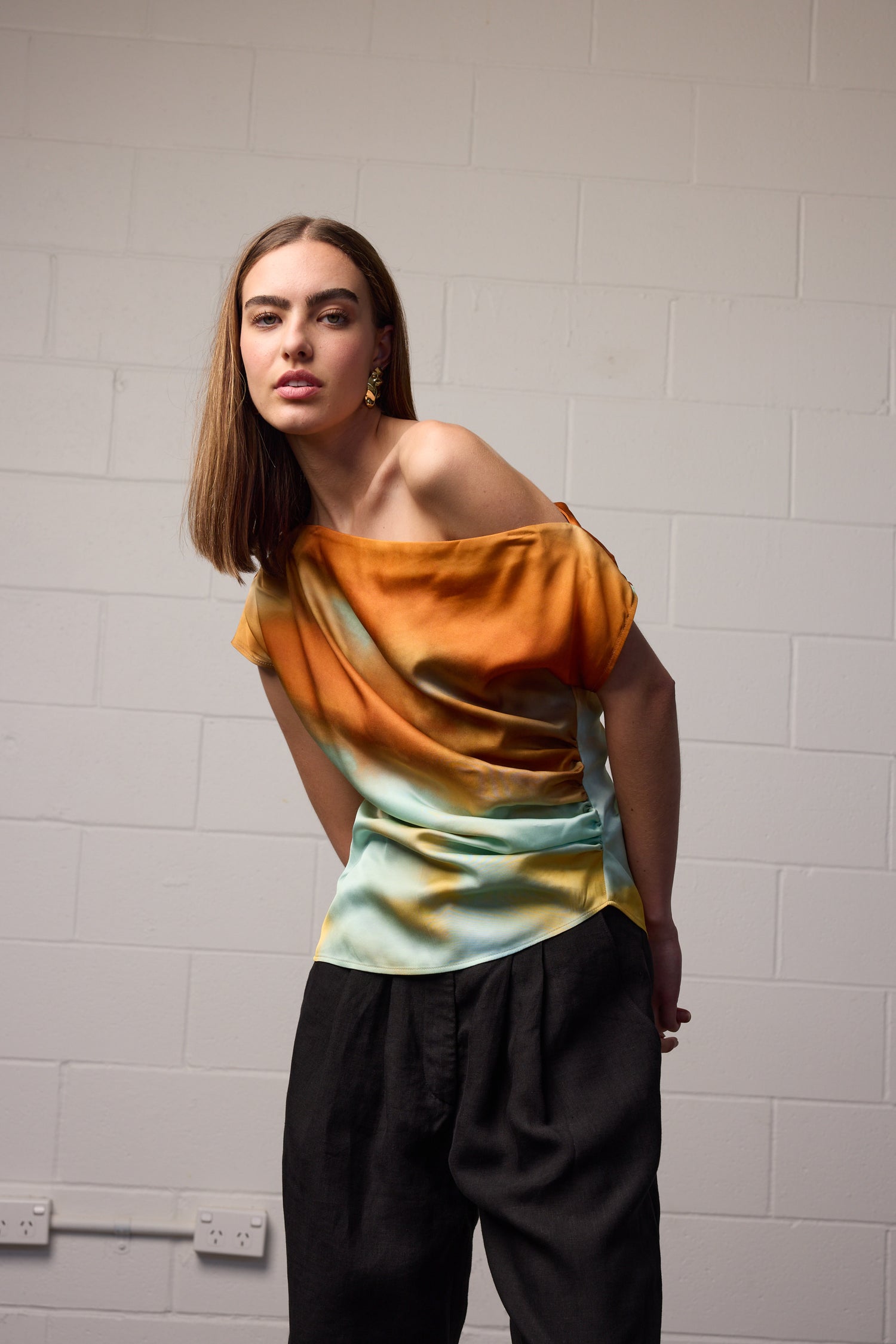• Asymmetric off shoulder design