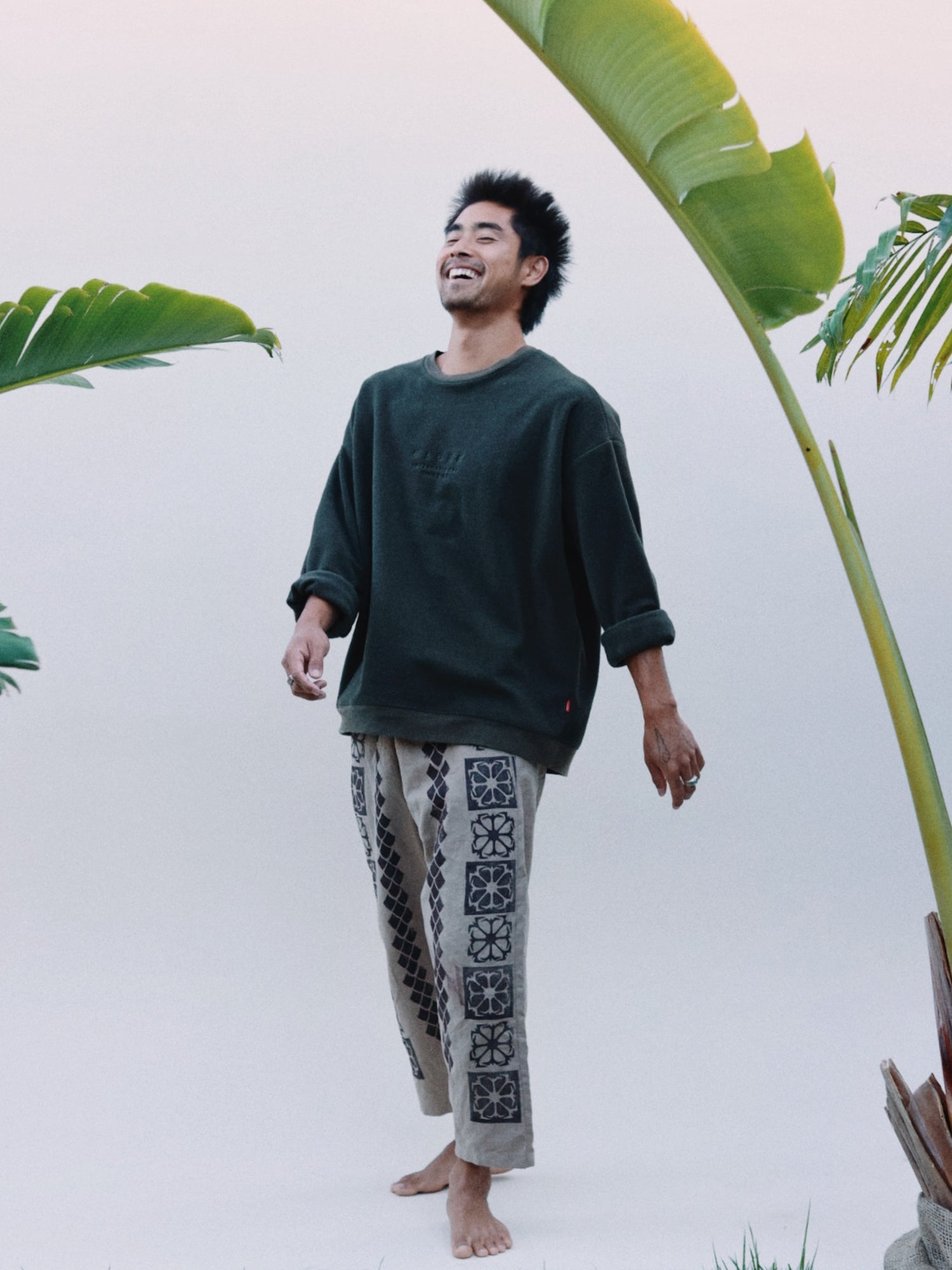 Triangular pockets and handkerchiefs symbolize the meeting of spiritual elements drawn from Hawai'i & Japan, much like the origin of the aloha shirt.