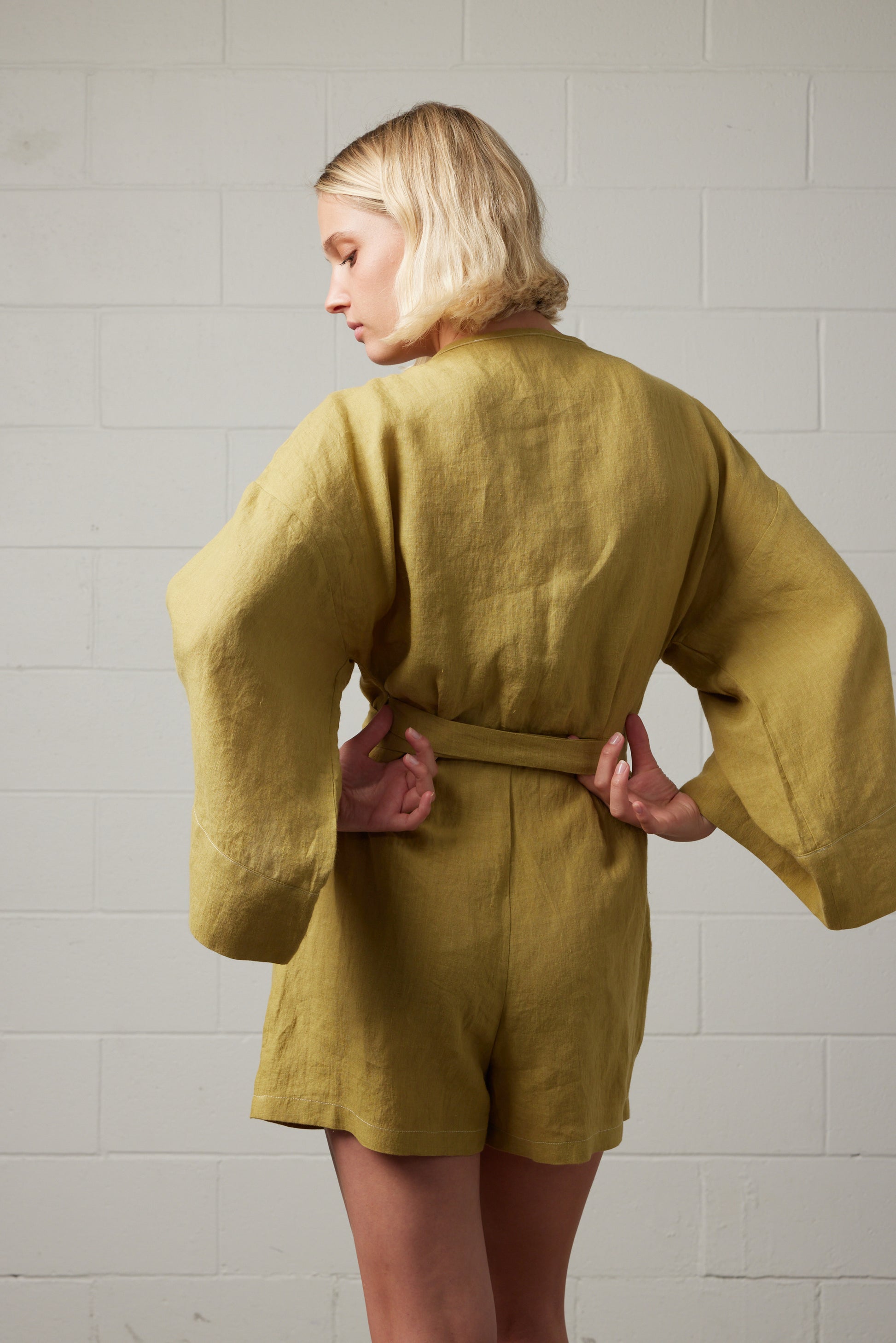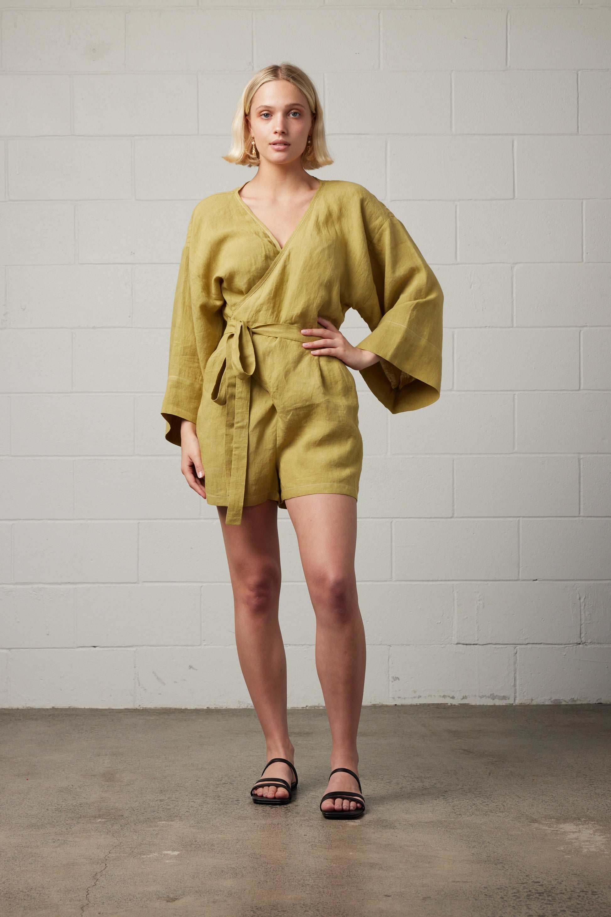 Eva Linen Romper Matcha
